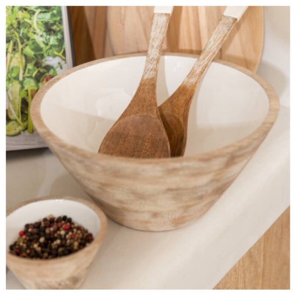 Prachtige robuuste serveerschaal gemaakt van mangohout en witte afwerking. Een sierraad op tafel!